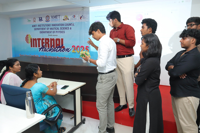 Internal Hackathaon 2025, on 16 Sep 2025, organized by AMET IIC, Dept. of Nautical Science and Dept. of Physics.
